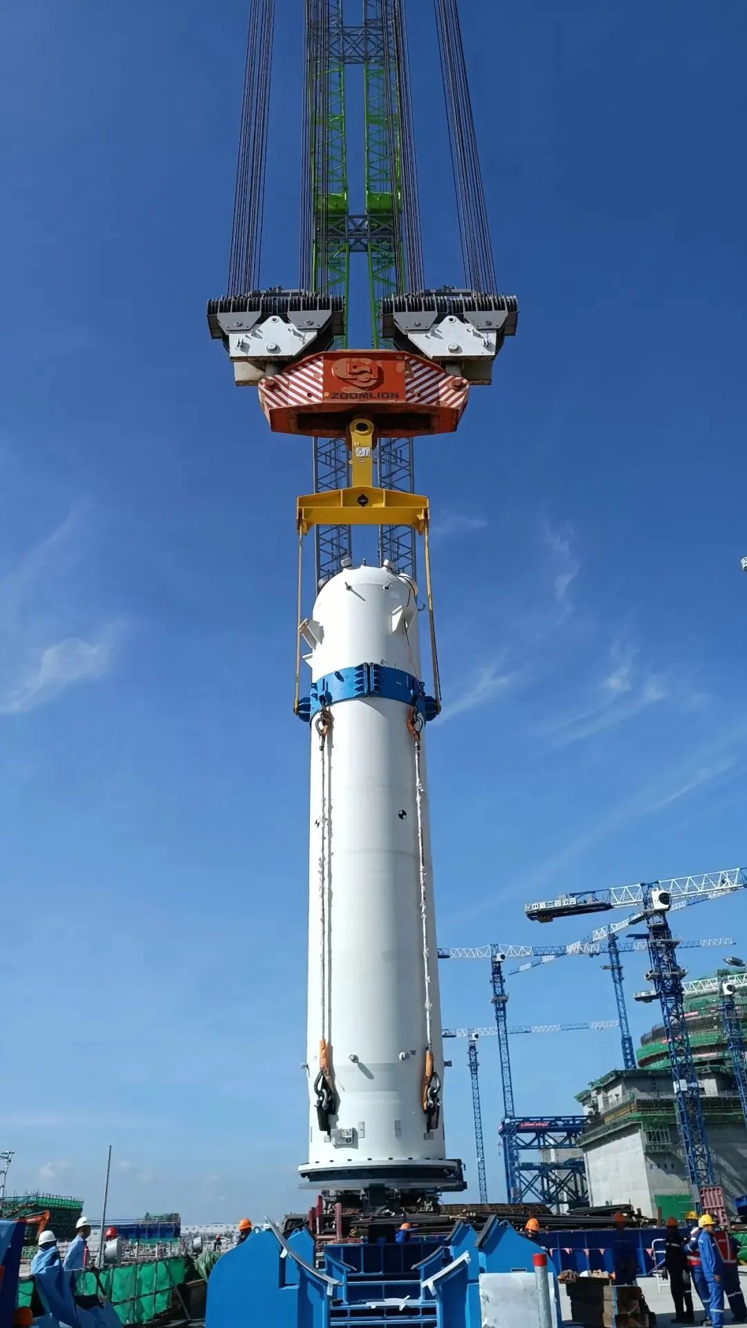 2021年9月,漳州核電1號機組首臺蒸汽發(fā)生器順利吊裝就位,整個吊裝過程中吊裝方案及所用的吊梁、配套索具、提吊耳軸均由巨力索具提供,為后續(xù)主設(shè)備吊裝奠定了堅實基礎(chǔ)。