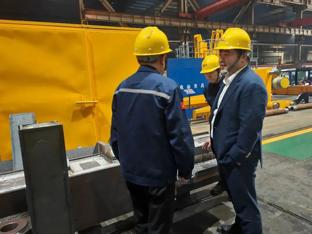 楊超先后來到鋼絲繩制造廠、鋼拉桿制造廠、冶金結(jié)構(gòu)件制造廠、鍛造索具制造廠,深入了解各制造廠現(xiàn)場管理人員安排、場地施工安全標準、生產(chǎn)進度等情況。現(xiàn)場管理人員針對自己所負責(zé)的相關(guān)工作向楊超逐一匯報,并就施工中所面臨的難點疑問,提出了具體的建議和意見。