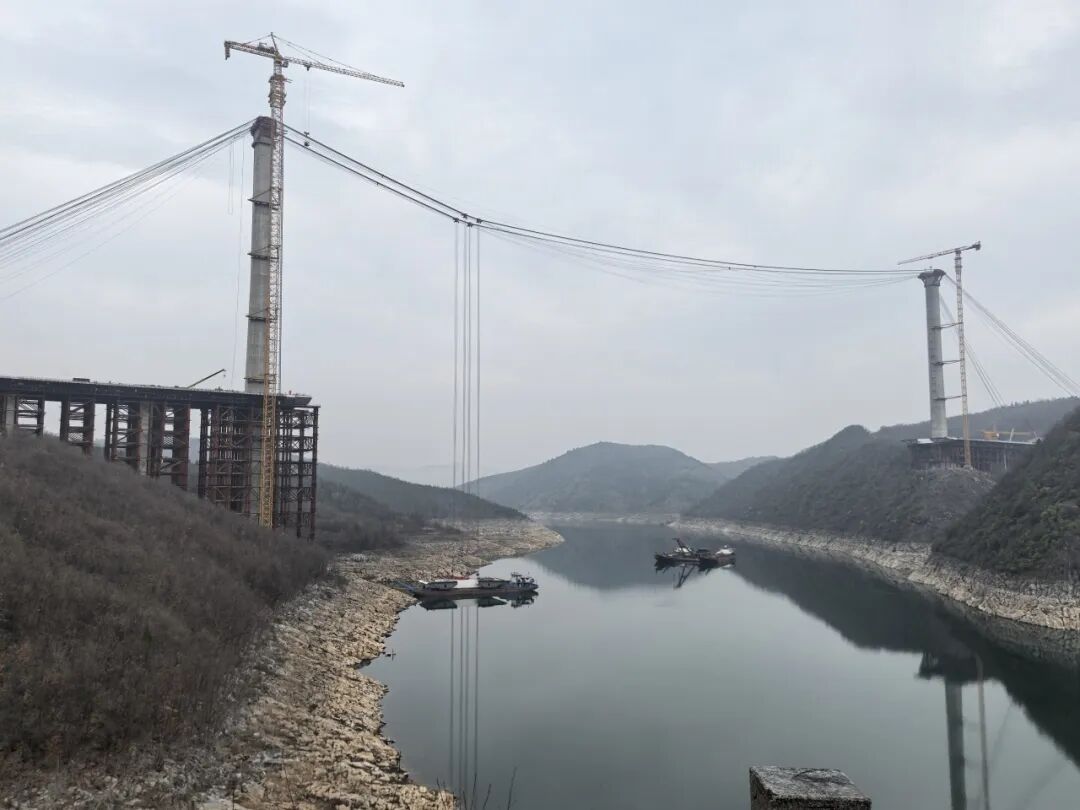 丹江小三峽特大橋地處鄂豫交界的丹江口水庫(kù)庫(kù)區(qū),是連接南北交通的重要節(jié)點(diǎn)工程。大橋全長(zhǎng)919米,主跨536米,是目前國(guó)內(nèi)最大跨徑跨峽谷分離式混合梁斜拉橋,橫跨陡峭峽谷,施工環(huán)境復(fù)雜,傳統(tǒng)吊裝設(shè)備難以滿足高空、大跨度、重載荷的作業(yè)需求。巨力索具針對(duì)項(xiàng)目特點(diǎn),量身定制了雙塔三跨式纜索起重機(jī)系統(tǒng),其跨度、起重量及智能化控制水平均達(dá)到行業(yè)領(lǐng)先標(biāo)準(zhǔn)。