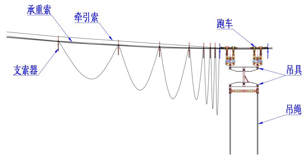 該纜索起重機(jī)系統(tǒng)采用高強(qiáng)度、耐腐蝕特種鋼絲繩及輕量化承重結(jié)構(gòu)設(shè)計(jì),最大起重量達(dá)320噸,可覆蓋全橋施工作業(yè)面,實(shí)現(xiàn)混凝土節(jié)段、鋼構(gòu)件等物資的高精度吊裝。同時(shí),系統(tǒng)搭載智能化遠(yuǎn)程監(jiān)控平臺(tái),實(shí)時(shí)監(jiān)測(cè)風(fēng)速、載荷、設(shè)備運(yùn)行狀態(tài),確保復(fù)雜環(huán)境下的施工安全與效率。