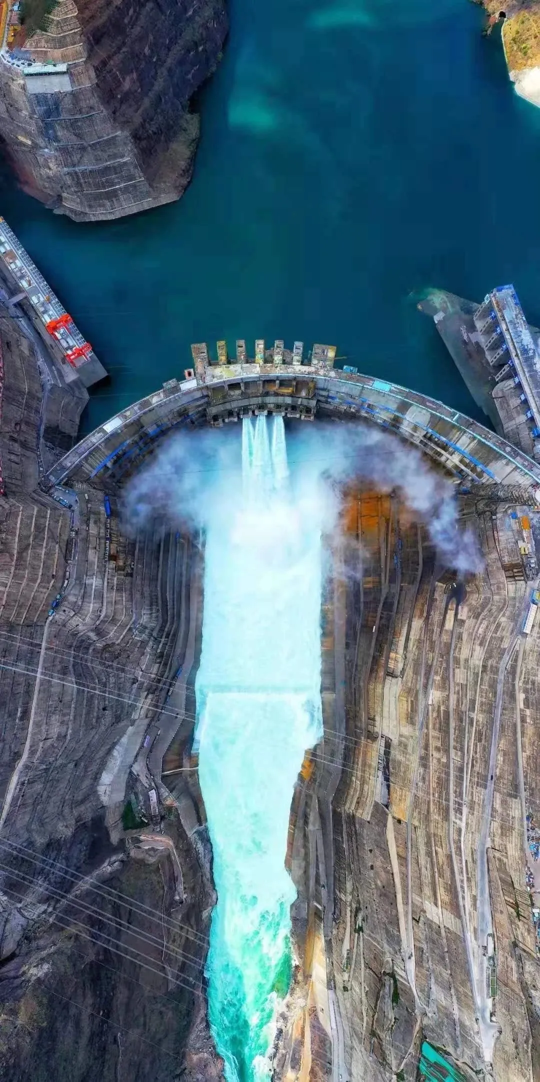 它的最大壩高可達289米,相當于一座100層的高樓,最大泄洪能力達30098立方米每秒,可以這樣換算,8分鐘就能裝滿一個西湖。而它的壩頂最窄處寬度僅有14米,如此輕薄的壩體卻可以承受1650萬噸的推力,與15000多個長征五號火箭的起飛推力不相上下。