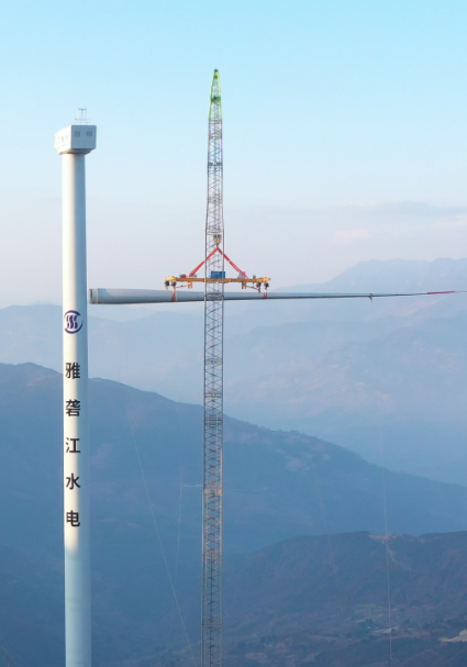 國投集團雅礱江水電臘巴山風電項目采用巨力索具單葉片吊具,在百米高空順利完成精準對接,這是四川省內(nèi)首個成功實現(xiàn)單葉片吊裝的風電項目。