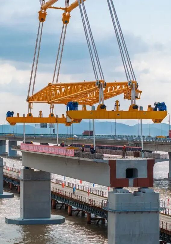巨力索具箱梁吊具全程保障國內(nèi)首座市域(郊)鐵路跨海大橋——象山線跨海大橋,重1700噸的預制箱梁成功架設。
