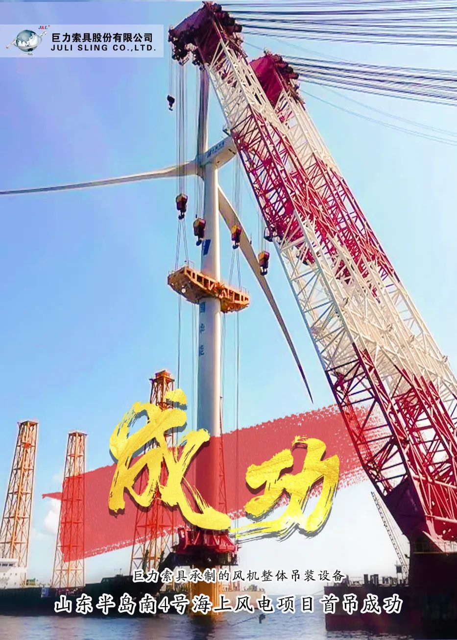 巨力索具承制的風(fēng)機(jī)整體吊裝產(chǎn)品在山東半島南4號(hào)海上風(fēng)電項(xiàng)目首吊成功
