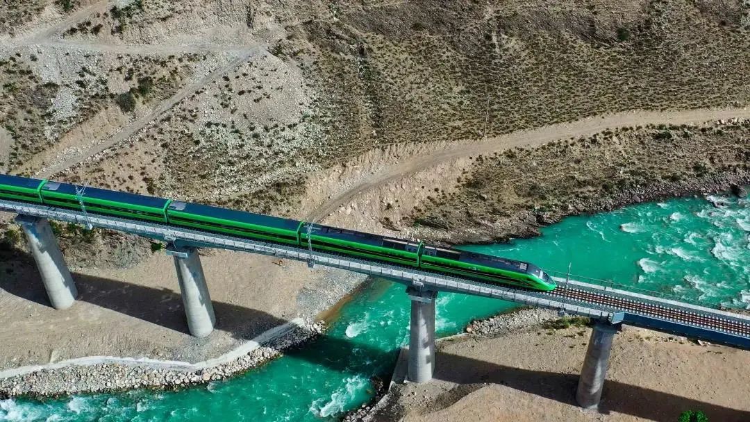 拉林鐵路正線全長435.48公里,設(shè)計時速160公里,是西藏首條電氣化鐵路。藏木雅魯藏布江雙線特大橋全長525.1米,主拱跨徑430米,橋址處海拔3350米,是目前世界上海拔最高、跨度最大的鐵路鋼管混凝土拱橋,也是雅魯藏布江上首座“一跨過江”的鐵路橋梁。